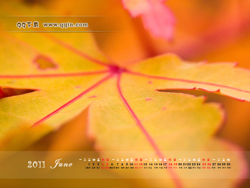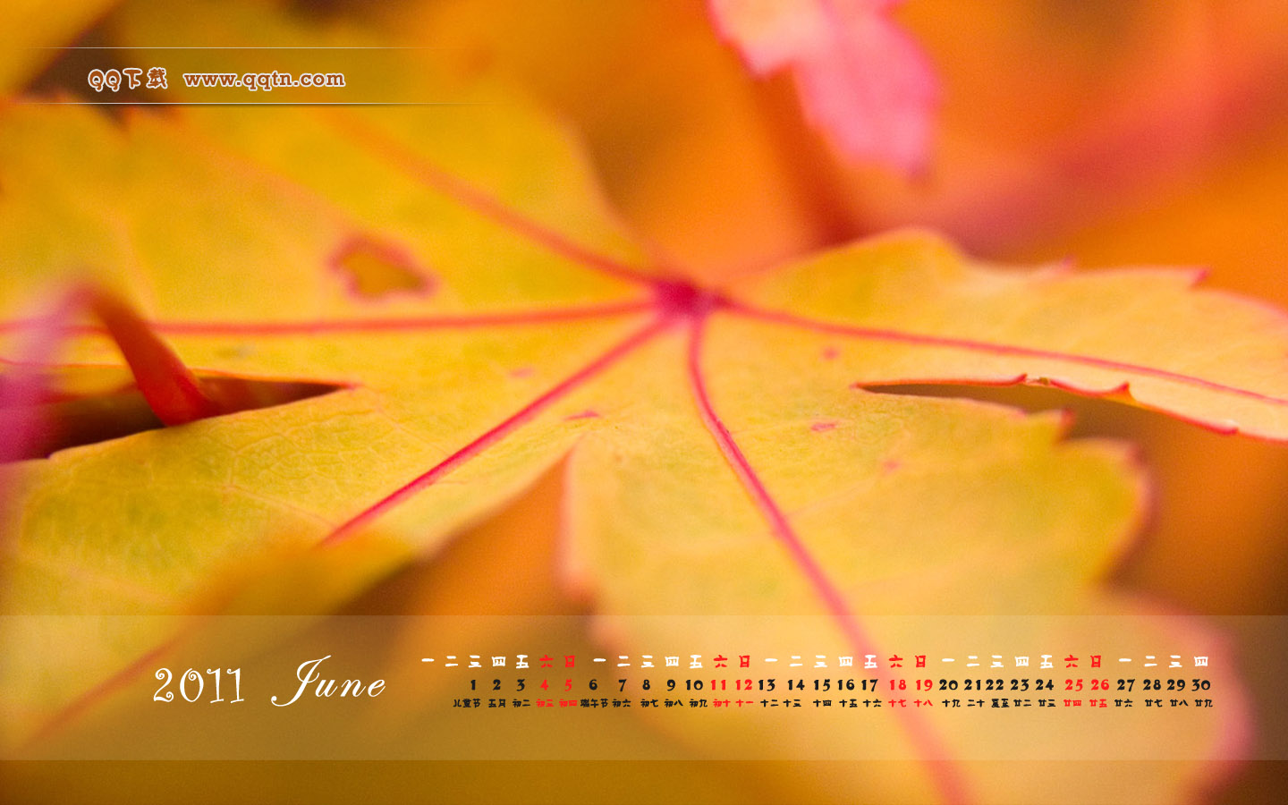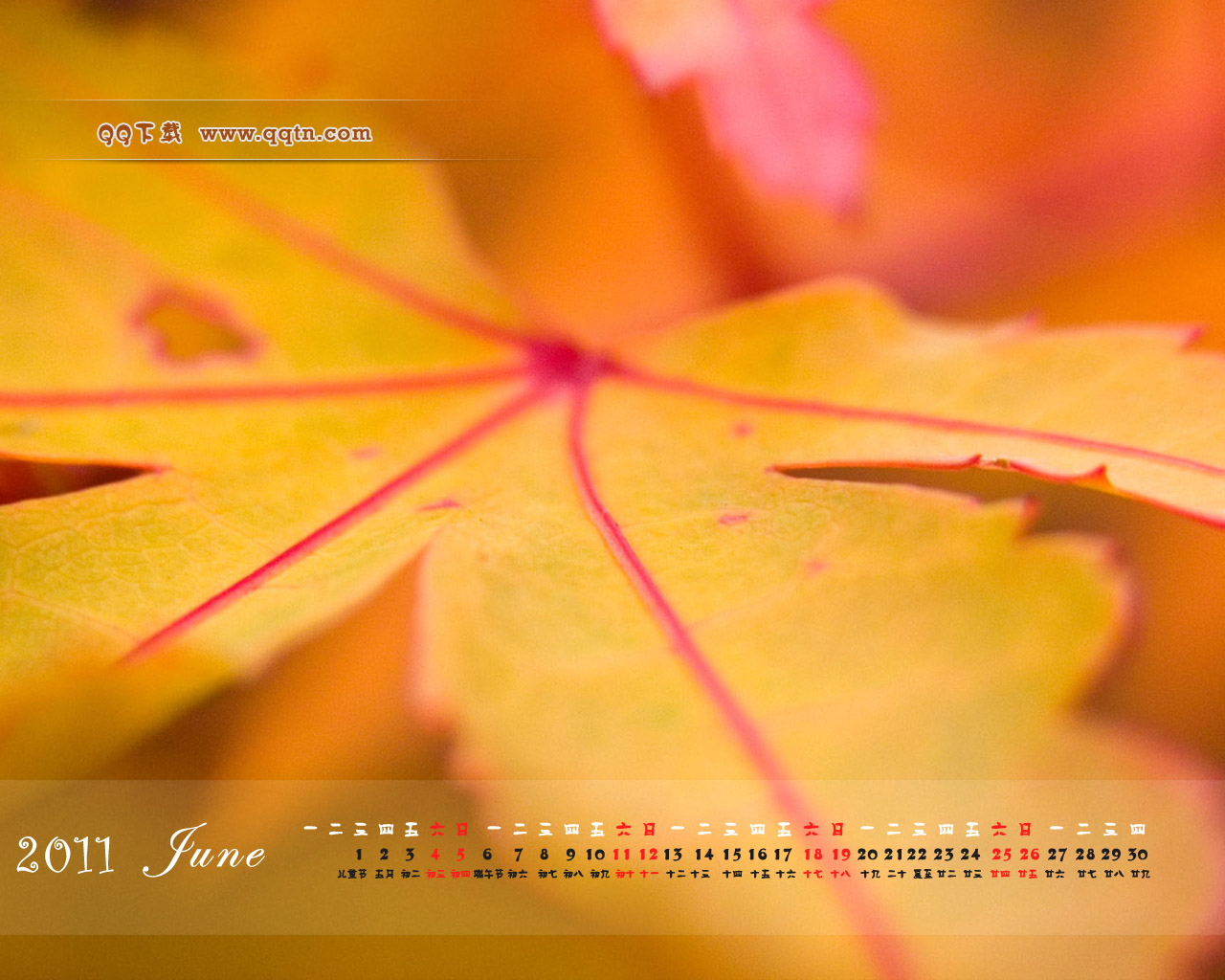 2011年6月日历壁纸 风叶传情,提供8种分辨率的桌面壁纸图片
