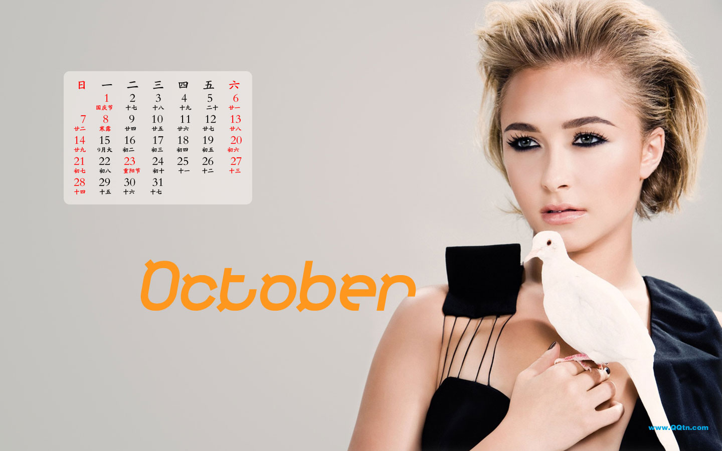 2012年10月日历桌面 美女和宠物:下载你需要的桌面壁纸:1024*768 17寸显示器 1400*900 17/19寸普屏液晶
