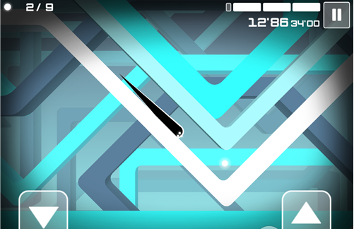 玩家可以通过点触式或者重力感应操控主角来回穿梭,上蹿下跳。避开活动的蓝色方块,有可能把你压得粉碎;也不要碰上蓝色墙壁,不然就有触电被焚的体验咯;碰上强气流可以迅速点击上下键进行冲刺;期间还要收集白色光点,寻找黑色开关……随着游戏的深入,还将见识到更多的玩法哦!