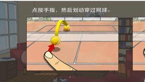 如图所示,这款游戏的基本操作只需要滑动手指就能完成。手指从网球上划过就能把球打回去。