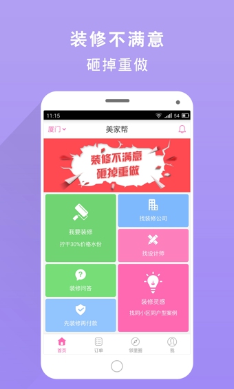 美家帮首创“邻里圈”功能,在这里你可以找到同一小区的所有装修业主,邻里之间分享装修经验,交流心得,让您少走装修弯路。、