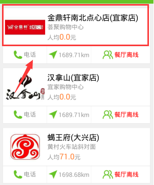 点击电话预定按钮,拨打电话热线进行预定,如图即可成功预定附近的餐馆。