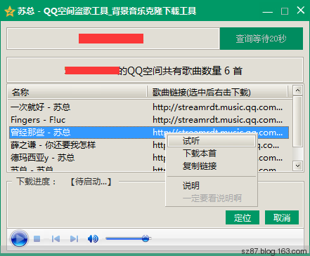 苏总QQ空间盗歌工具是一款由苏总制作的QQ空间背景音乐克隆下载工具,这款软件可以帮助QQ空间用户将好友的空间音乐克隆到自己空间里,逛别人空间的时候突然听到的自己喜欢的音乐?想把音乐下载下来据为己有?没关系,这款苏总QQ空间背景音乐克隆下载工具帮你一键搞定。