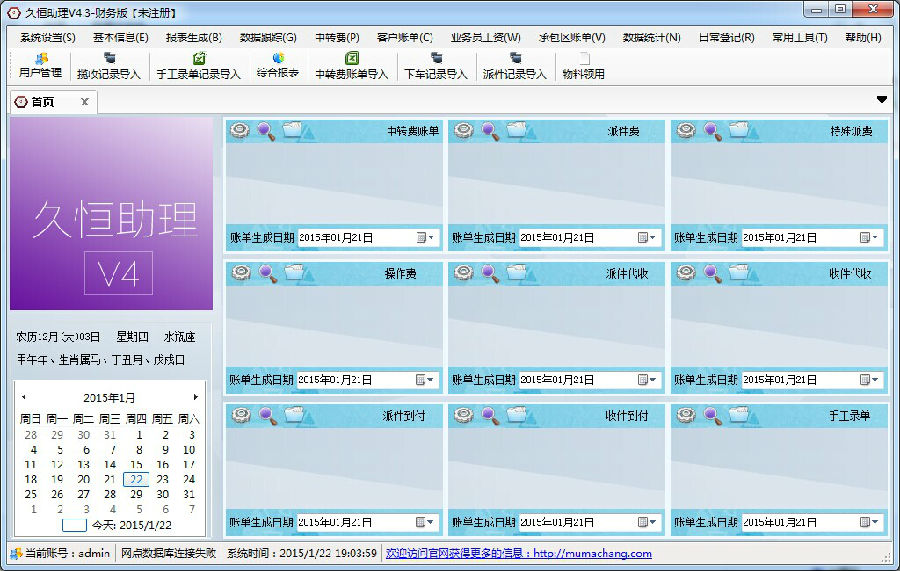 久恒快递管理软件简称久恒助理,是一款功能强大的圆通快递网点管理类软件.在以往版本的基础上进行改进优化后最新推出了4.3版本,该版本在财务计算报表和统计数据的功能上比较突出,能大大提高网点对本网点的各项数据的全面掌控和了解,加强对进出港代收到付单的监控和对客户的出账单效率、计算员工工资单效率以及出承包区的账单的效率.