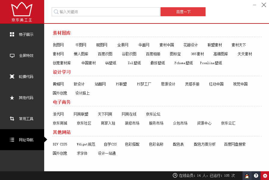 3、软件集成京东美工常用的素材网站、学习网站,便于快捷访问。