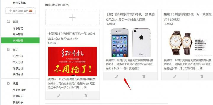 登录微信公众平台之后点击素材管理://mp.weixin.qq.com/