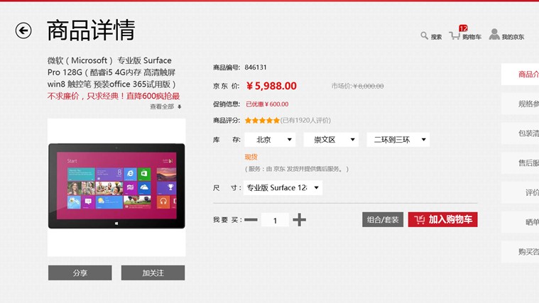 京东Windows 8客户端专为win8用户设计,在电脑上也能体验京东商城客户端啦!京东(windows8版)是专为windows8用户推出的一款京东购物软件。适用于Windows 8以上平台,支持x86, x64, ARM处理器,具有精彩活动、掌上秒杀、商品分类、商品浏览、下单等功能,旨在为您打造更加方便、快捷的购物体验。