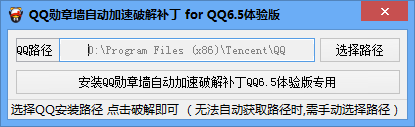 2、打开QQ6.5体验版勋章墙破解补丁,工具会自动获取QQ安装目录,如果无法获取,请手动选择路径