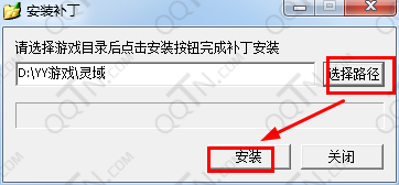 运行灵域补丁工具——选择游戏安装目录(通常在D:\YY游戏\灵域)——点击“安装”