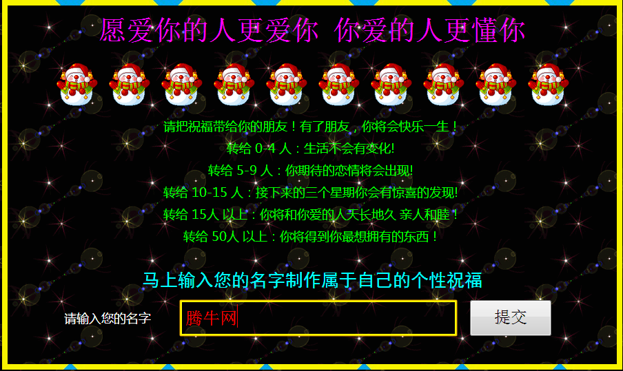 2、在网页底部输入您的名字,点击提交就可以生成圣诞祝福网页了。