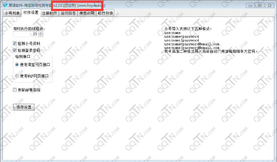 黑谍淘宝账号检测专家破解版是在官方最新版本基础上进行破解,软件打开之后,直接显示为已注册,免费体验软件所有收费功能;同时本页面会随着官方版本更新及时更新破解版,欢迎大家收藏关注,第一时间下载最新破解版!