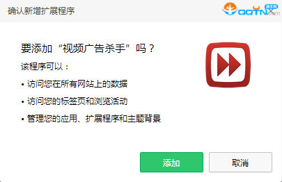 2、安装完成后打开浏览器扩展管理,在扩展管理中可查到已经安装成功的视频广告杀手,用户直接进入视频播放网页,该插件会自动将广告过滤。