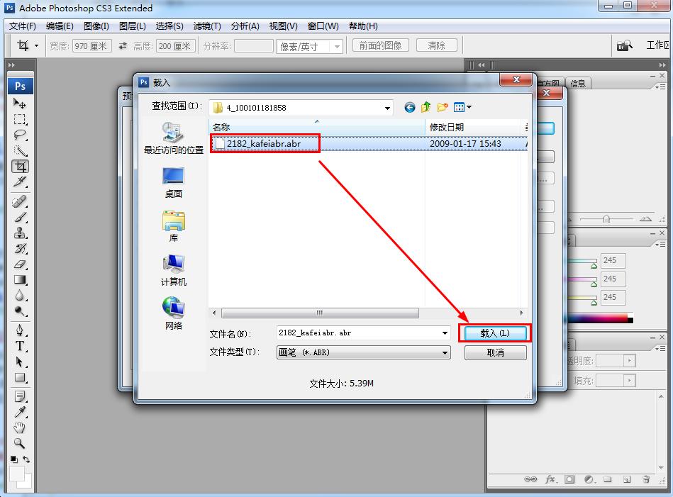 3、选择电脑中存在的笔刷文件,并确定,如图所示: