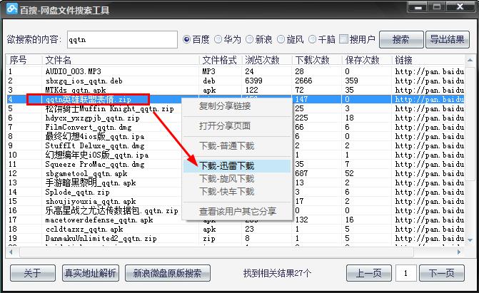 6、支持一键普通下载、迅雷下载、旋风下载、快车下载。