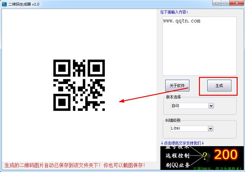 2、点击生成即可将文字转换成二维码图片。