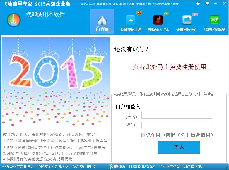 飞速流量专家2015是最新的一款网站刷流量工具,它可以帮助你刷网站关键字排名、网站排名优化、刷网站流量软件功能强大,可适用于刷网站综合排名、刷百度相关搜索、关键词排名等,软件以互刷模式进行智能翻页精确点击,强大的伪造来路地址等功能皆为业内首家实现。