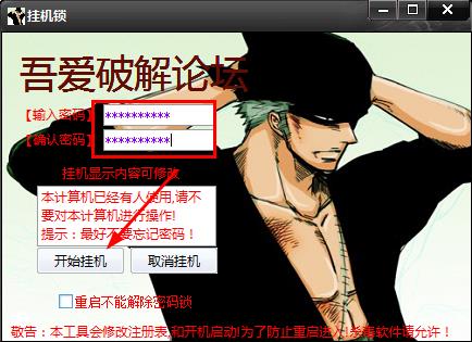 当前位置:线上电竞星空系统工具桌面工具 → 挂机锁 1.0 吾爱破解版
