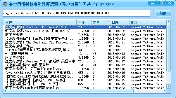电影资源搜索工具是一款免费的电影资源搜索神器,使用该软件可以帮助你将百度云盘资源解析出来生成独立的下载链接,并可将下载链接复制到迅雷、QQ旋风等下载器中进行快速下载,有需要的朋友欢迎下载使用。