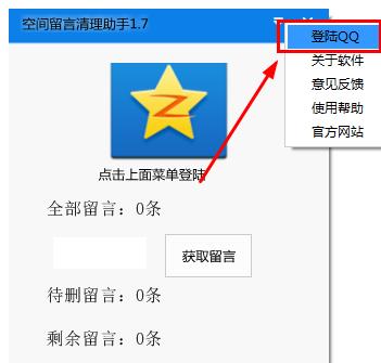 1、打开【空间留言清理助手】,点击右上方【设置】-【登陆QQ】