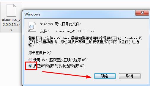 1、解压文件,鼠标右键点击【xiaomise_v2.0.0.15.crx】,选择【打开方式】;