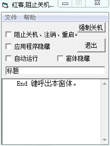 阻止关机工具能够有效的的阻止电脑关机,可随电脑自动启动,可隐藏自身窗体,并支持强制关闭电脑。