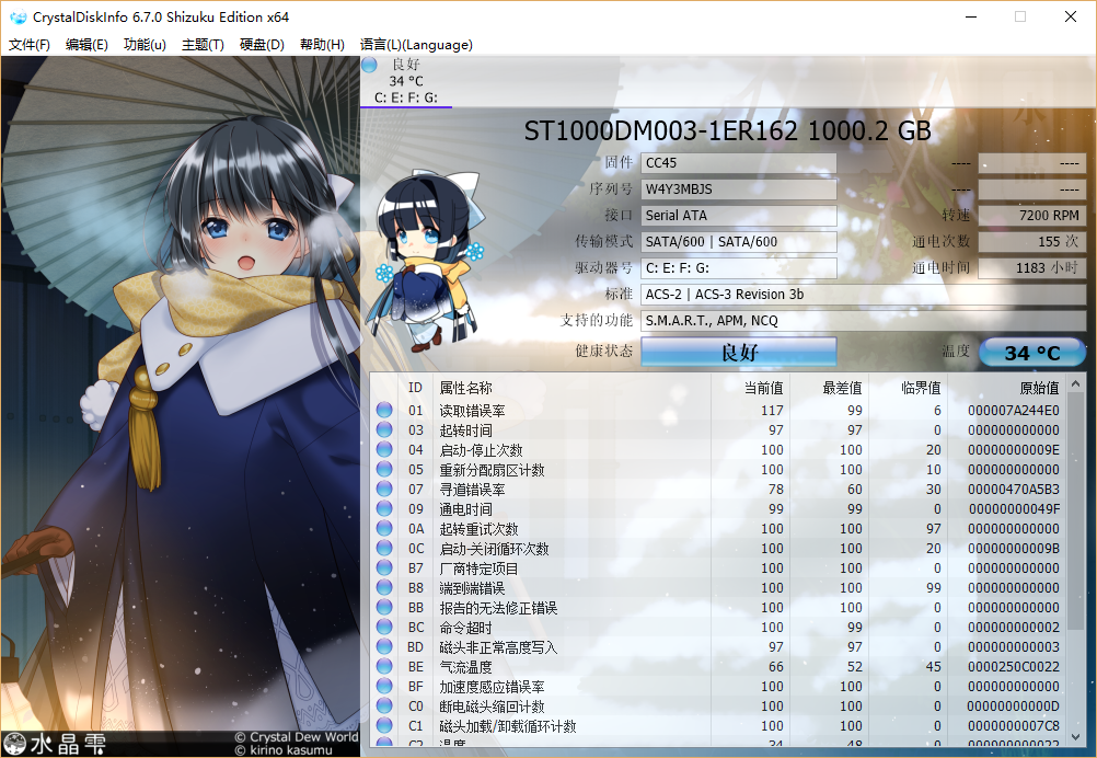 而 CrystalDiskInfo Shizuku 更具特色之处在于它有一个很萌的用户界面。