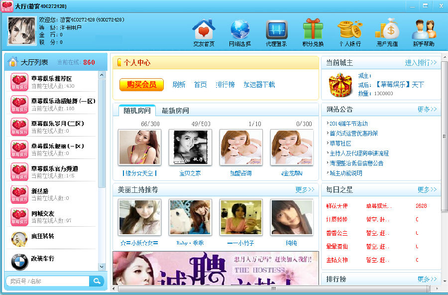 可容纳千人同时在线的大房间,美观流畅,全互动支持您各种晚会及娱乐……