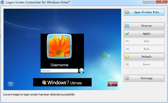 windows登陆界面修改工具是一款同时支持32位/64位操作系统的软件,软件操作十分简单只需要选择一个你喜欢的图片,通过这个软件便可以马上设置成你的windows登录背景。