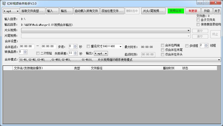 亿彩视频合并助手是一款专业的视频合并软件,这款软件操作简单、绿色小巧,为用户提供了几种视频批量合并模式,帮助你进行快速视频编辑,非常方便好用,欢迎有需要的朋友下载使用!