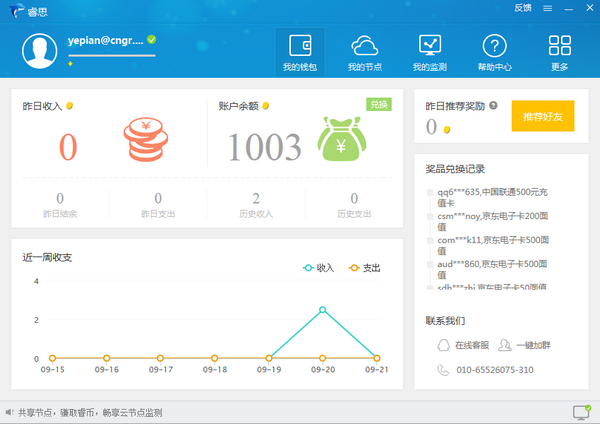共享节点,做浏览监测任务所得的睿币,积累一定额度后,可以在礼品兑换平台兑换相应的礼品。