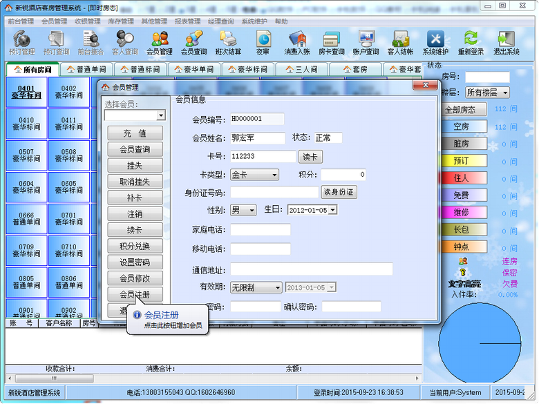 2. 完善的酒店客房状态管理、预订管理,详细地预订状态报表,为您的预订销售做出权威指导;