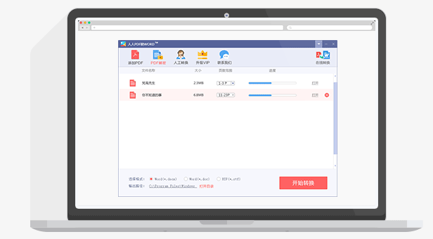 软件支持文件或文件夹拖曳操作,可直接将需要转换的PDF文件(或包含PDFf文件的文件夹)拖曳至PDF文件列表框中,点击开始转换后,即启动转换程序.