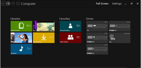 Immersive Explorer是为桌面用户设计的,现在也支持触摸屏了,这个软件使用了硬件加速,所以显示的动画和过渡效果也会十分的流畅。