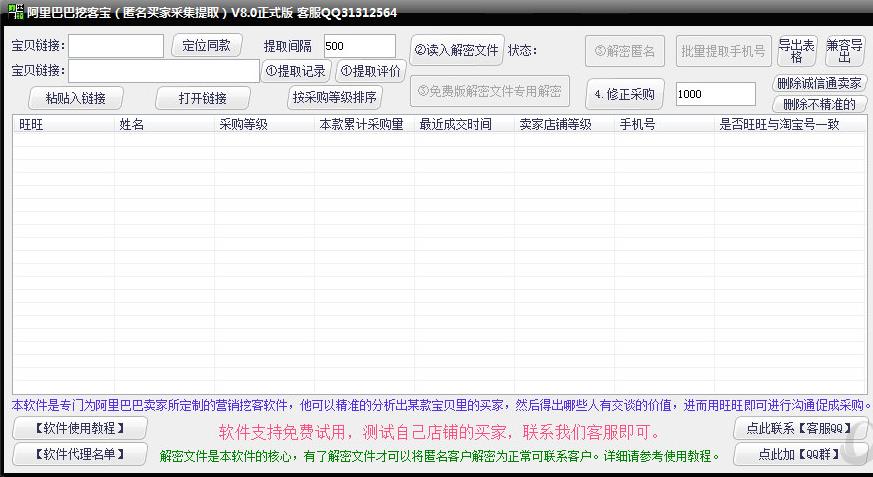 2、软件采集信息多样,旺旺、姓名、采购等级、累计采购量、成交时间、淘宝店铺等级、店铺主营等