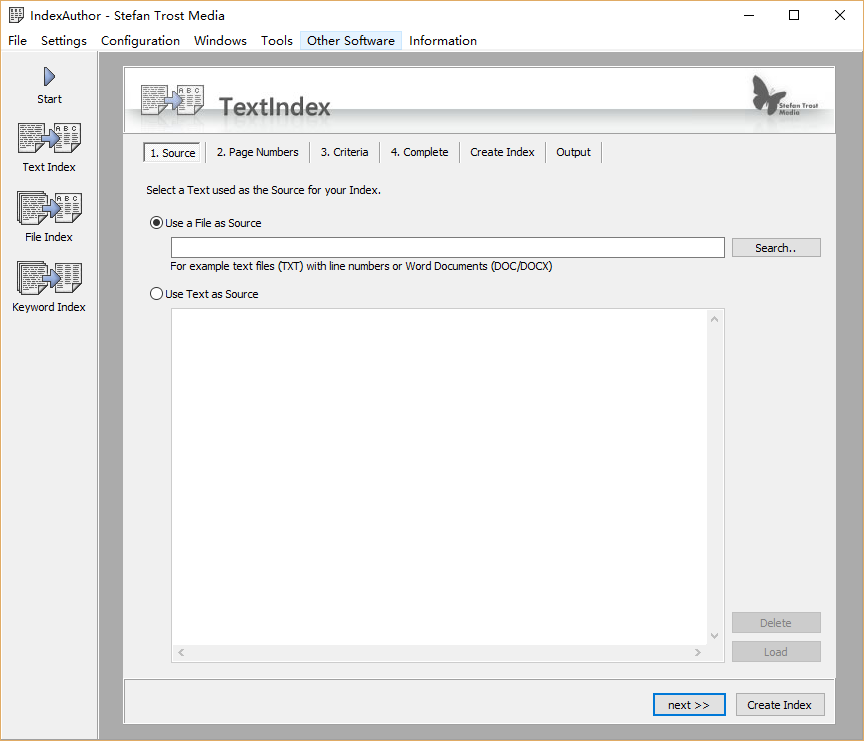 你也可以使用的工具之一来从普通的文本文件的索引文件。