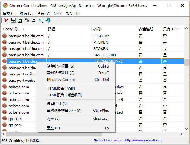 它显示由谷歌Chrome浏览器的Web浏览器保存的所有Cookie的列表。