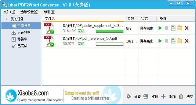 小吧pdf转word转换器是一款专业的pdf转word格式转换软件。软件功能强大、操作简单,你只需把PDF文件添加到软件中,就能快速准确的将您PDF文档中的文字及图片提取出来,转换并保存成Word格式文件。该软件还能够完成PDF文件到WORD文件的批量转换转换功能,它具有如下特点: