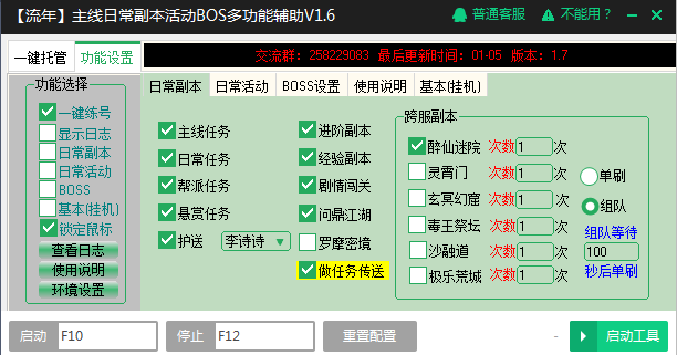 功能:【流年】主线日常副本活动BOS多功能辅助V1.60
