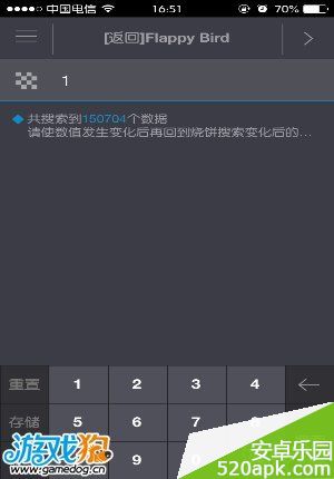 还在羡慕别人那些望尘莫及的分数吗?下面小编就为大家带来Flappy Bird修改器,有需要的小伙伴可以用用。很简单的几个步骤就能让你的分数让大家眼前一亮,快来围观吧。