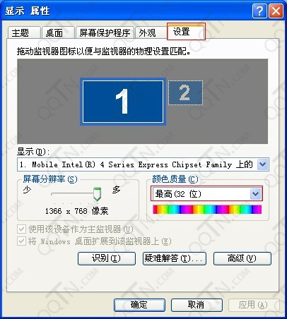 1、系统颜色质量32位:桌面->右键->属性->设置->颜色质量->最高32位