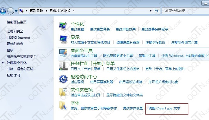 3、关闭ClearType,因为ClearType会使原本细的字体变成粗体。具体方法:控制面板-〉外观和个性化-〉字体,有一个项叫“调整 ClearType 文本”,点击进入,不要启动ClearType ,然后一直下一步直到没了就可以了。