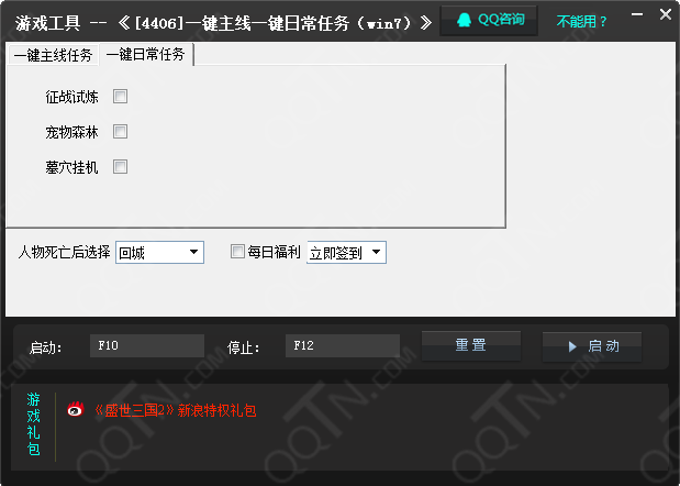 4.在盛世三国2辅助工具中“启动”“盛世三国2[4406]一键主线一键日常任务(win7)”