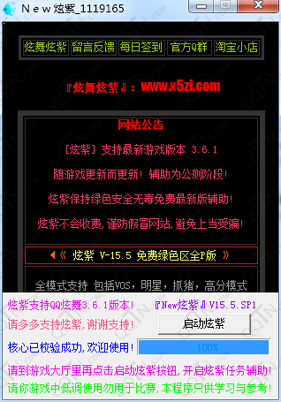 解压缩包释放文件到桌面→登录QQ炫舞到大厅→双击打开[炫紫xx版]→点击[启动炫紫]按钮→1~3秒内辅助弹出操作界面→[开启步骤结束]