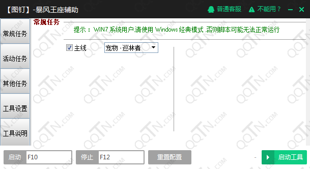 请确保游戏画面完全显示,然后设置好图钉暴风王座辅助相关任务参数,再启动游戏并将鼠标移到游戏窗口处即可。