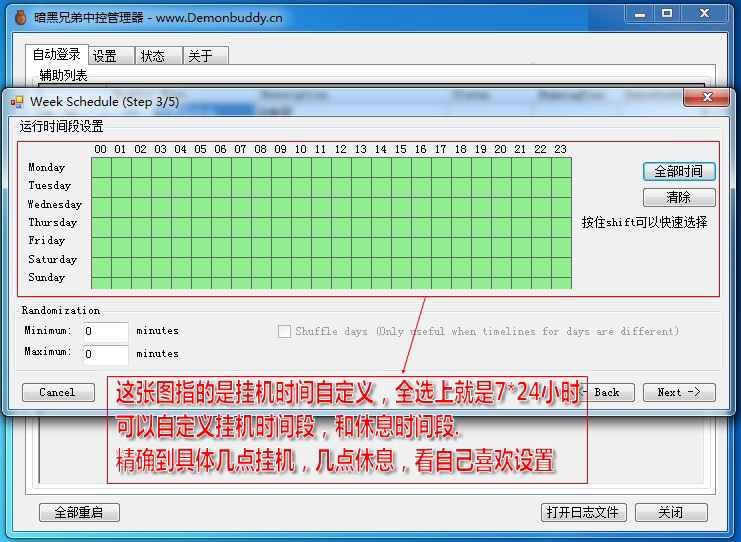 第六步:挂机时间设置(7*24小时,可以设置几点上线,几点下线休息这些,真是挺方便的东西)