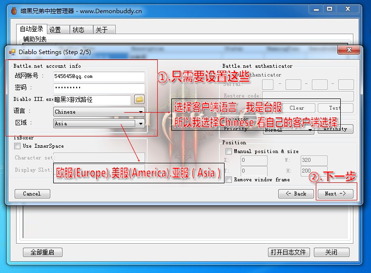 第五步: 战网帐号、暗黑3游戏路径、客户端语言、服务器设置