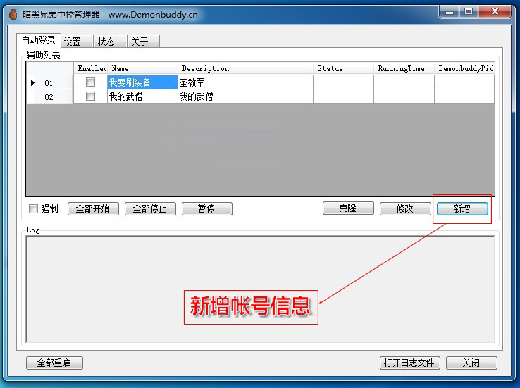"暗黑兄弟中控管理器”智能管理暗黑3游戏和Demonbuddy软件,一健启动,自动登陆,自动开启DB辅助,然后自动运行挂机!