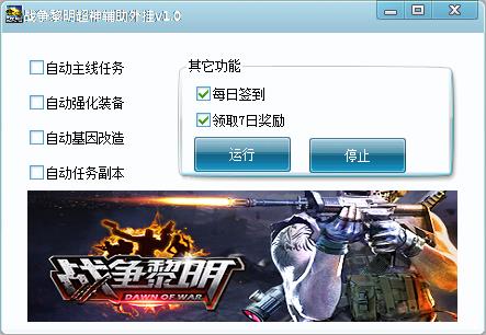 战争黎明超神辅助是一款专门针对火爆页游战争黎明制作的游戏辅助工具,这款战争黎明超神辅助拥有比较丰富的功能,包括自动主线任务、自动强化装备、自动基因改造、自动任务任务等等,让你更愉快的进行游戏体验,欢迎喜欢玩战争黎明的玩家下载使用这款战争黎明超神辅助!