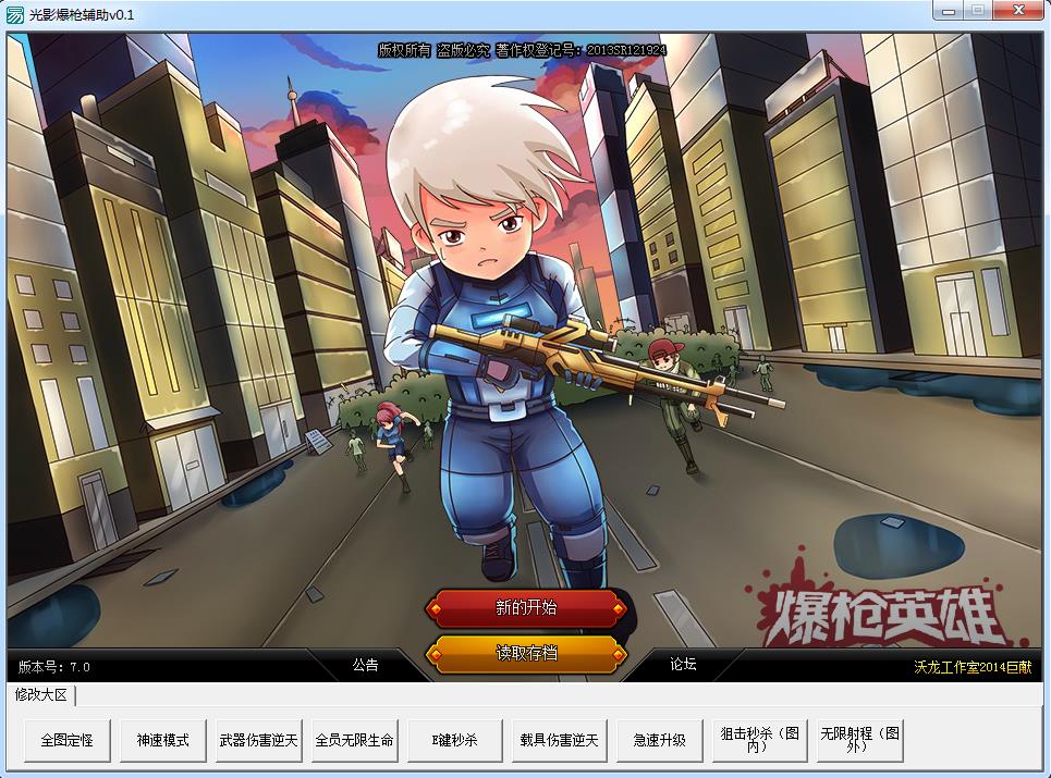 爆枪英雄光影辅助是一款专为同名页游爆枪英雄制作的游戏辅助工具,这款爆枪英雄光影辅助可以帮助玩家进行全图定怪、开启神速模式、武器伤害逆天、全员无限生命、E键秒杀、载具伤害逆天、极速升级、狙击秒杀、无限射程等等,喜欢玩爆枪英雄的玩家可以来试试这款光影辅助哦。