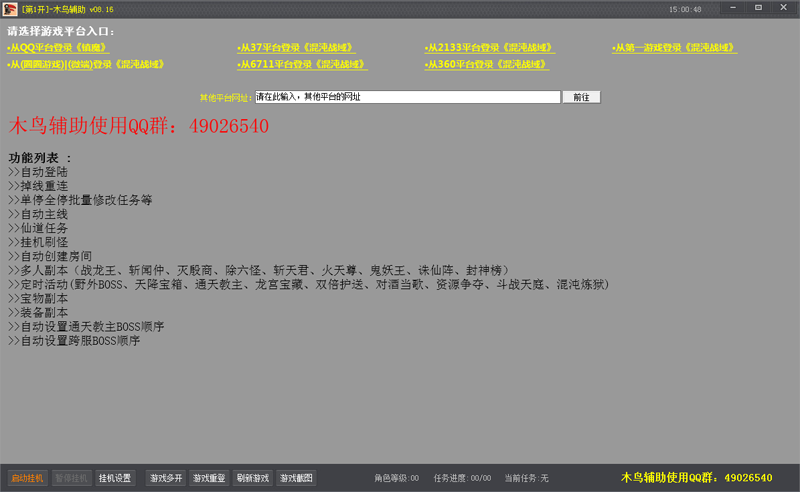 5、木鸟镇魔辅助支持自动掉线重连、新区练号自动选择职业等功能